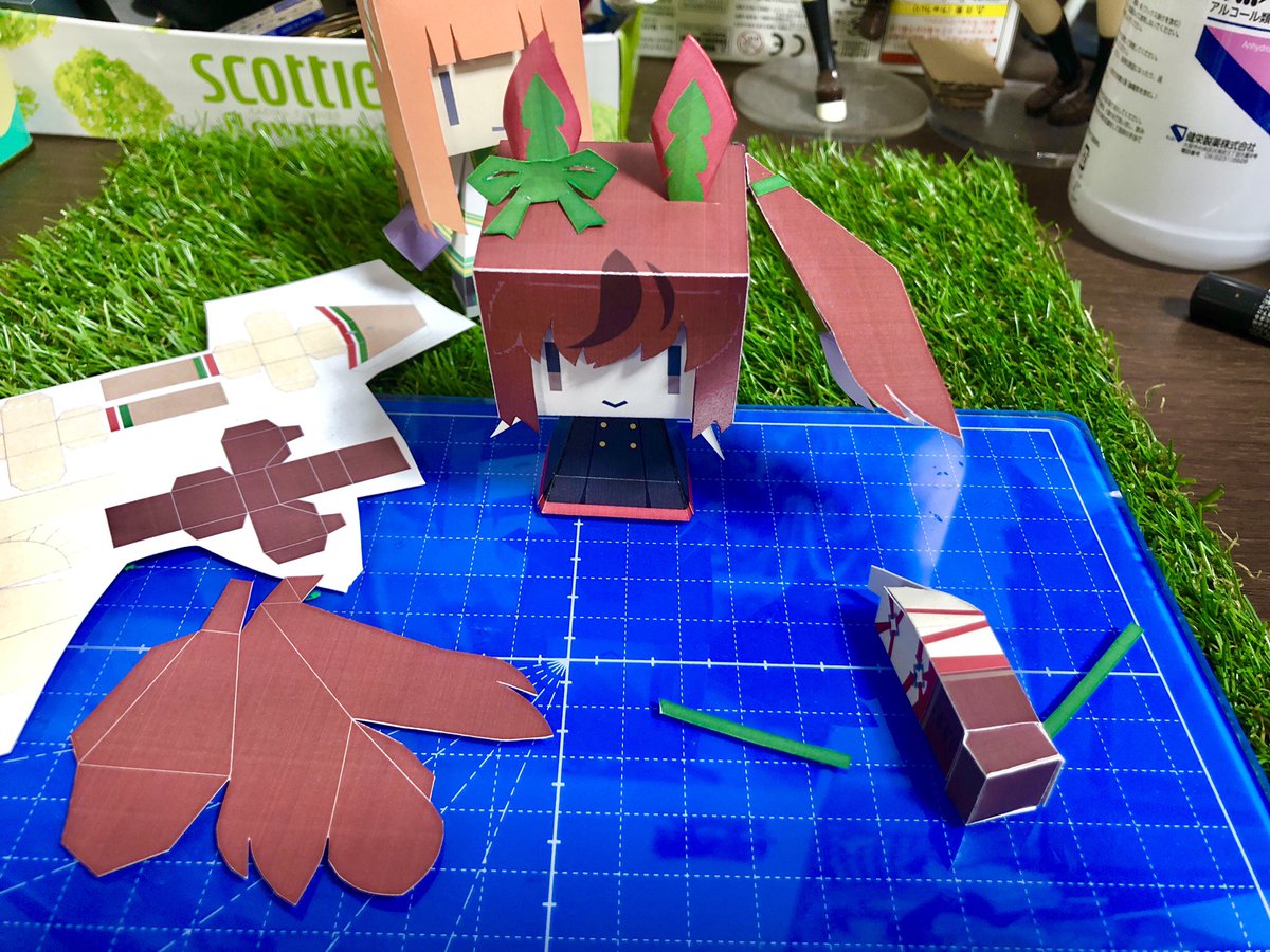jiuさん(@jiujiu_3 )のナイスネイチャペーパクラフトやっと完成しました。もはやタグ付けるのも憚られる遅刻ぶりですがとりあえず。 紙の断面や折り目を可能な範囲でリタッチ。髪はポスカの青と赤を1:4くらいで混ぜると良い感じ。モフモフの裏側も塗りました。 #ウマ娘 #ナイスネイチャ生誕祭2022