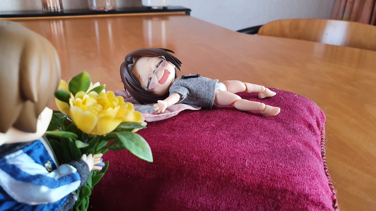 M: I made breakfast. Happy Birth- H: Zzzz M: Could at least gotten dressed instead of gaming and falling asleep again. M: *gives flowers and lays down* Might as well join. M: zzz H: *wakes up* Thanks Moblit #ハンジ・ゾエ生誕祭2022 #ハンジ・ゾエ誕生祭2022 #ハンジ生誕祭