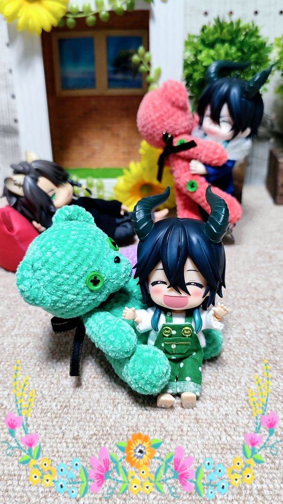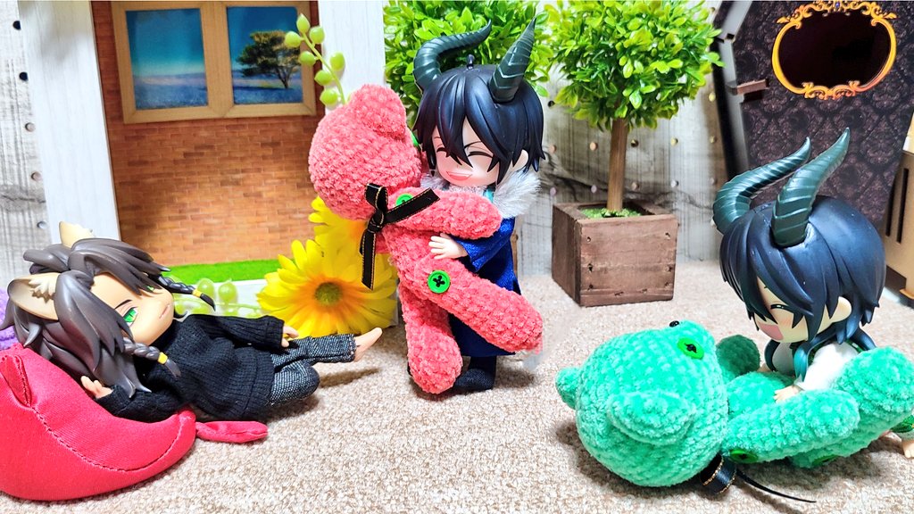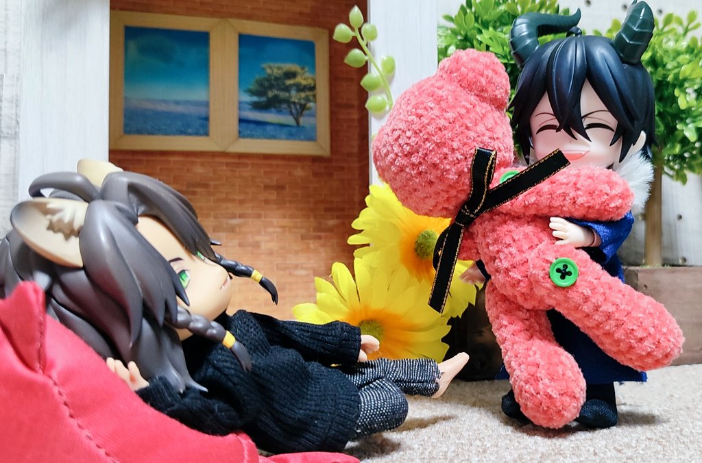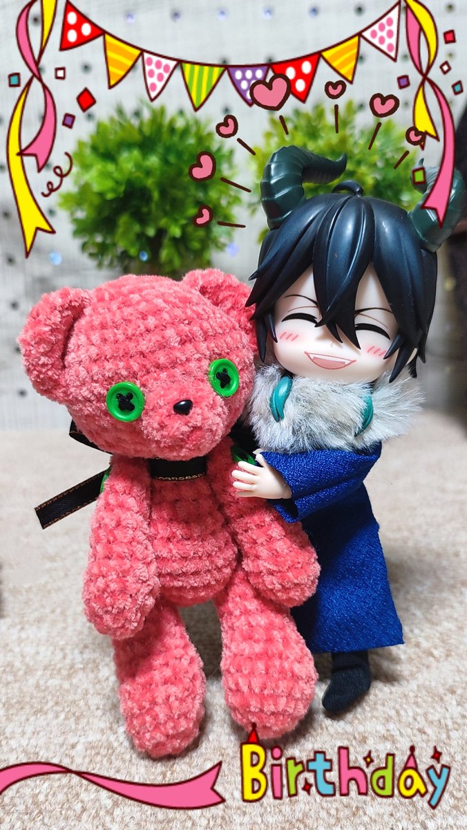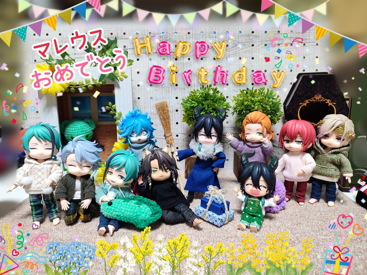 マレ様🐉お誕生日おめでとう☺️ 早めに誕生日プレとしてあげちゃったけど、レオナさんモデルの赤いくまさん気に入ってくれた♪ お花の箒無いから、ただのほうきw ✨💐₍₍ ⸜(* ॑꒳ ॑* ⸜) #マレウス・ドラコニア誕生祭2023 #ツノ太郎誕生祭 #twstドール部