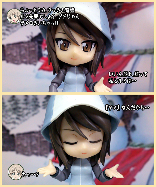 アキ:聖グロからプレゼントで貰ったドレス、中々似合ってるんじゃない? ミカ:どれだけ姿を変えても私はミカでしかない。でも心の奥底で新しい自分を知った気がしたのもまた事実さ…フフ… アキ:(素直に良いねって言えば良いのに) #ミカ生誕祭2021 #ミカ生誕祭