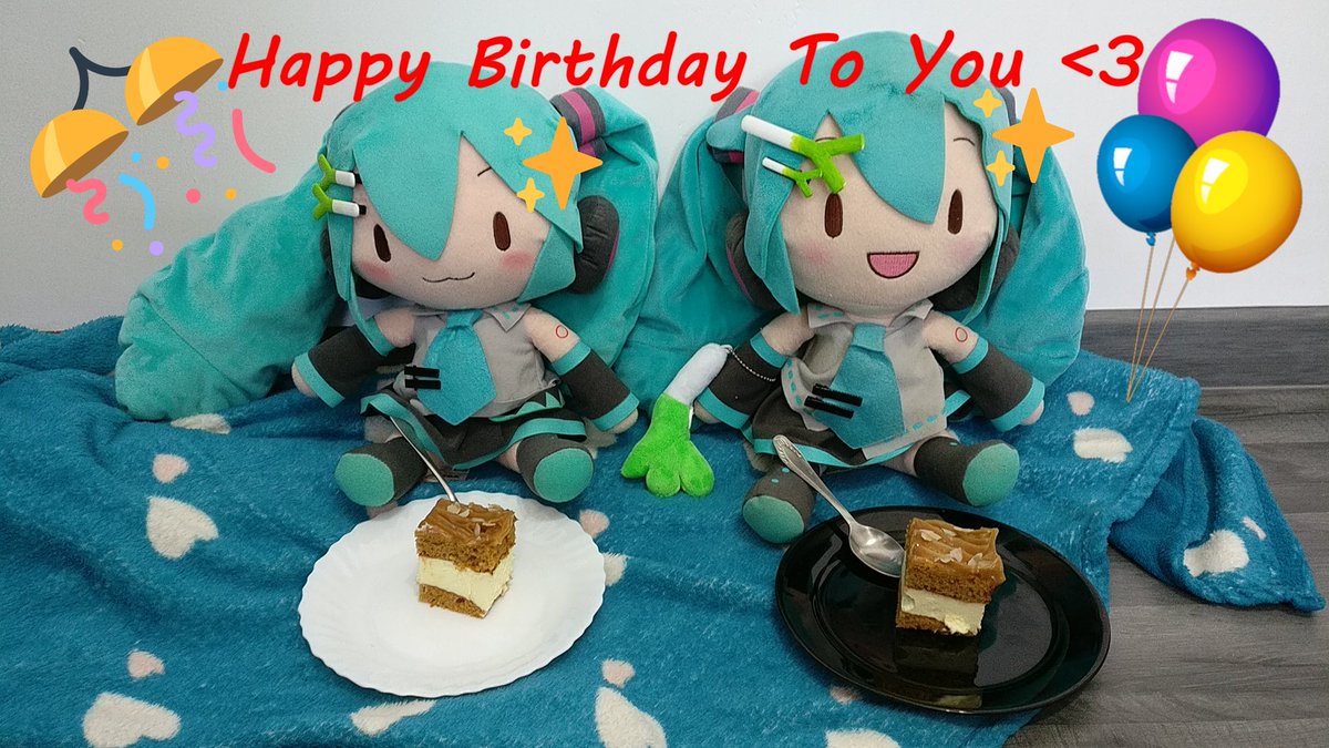 Happy Birthday Miku-chan! I'm enjoying some cake with my fuwas 💙 #初音ミク #初音ミク生誕祭2021 #初音ミク誕生祭2021 I took inspiration from @pretz179 's tweet.