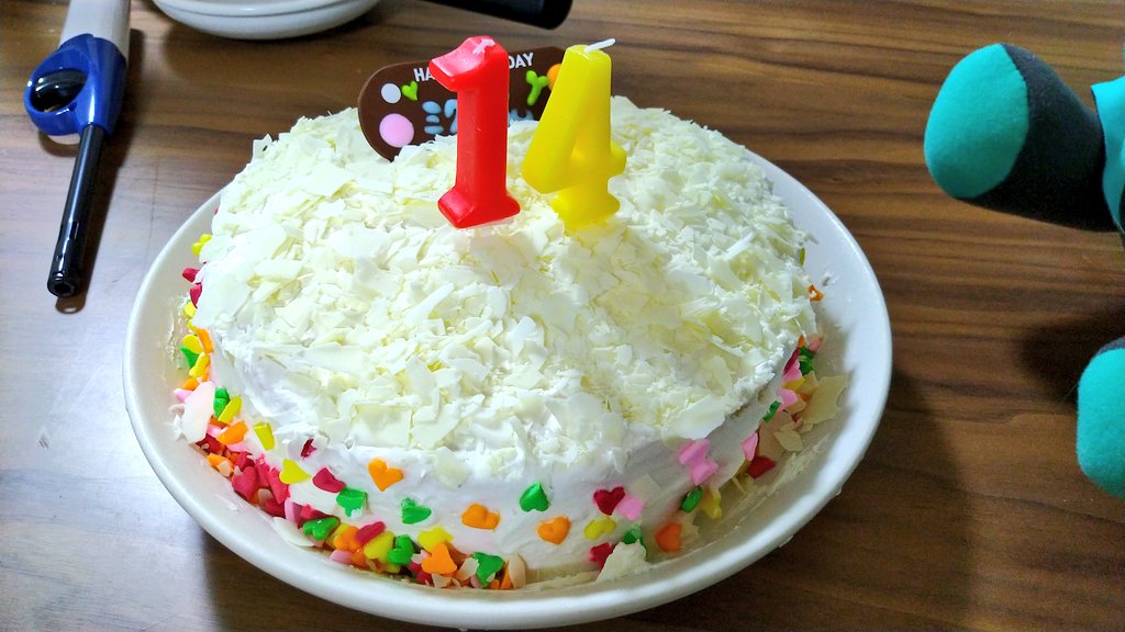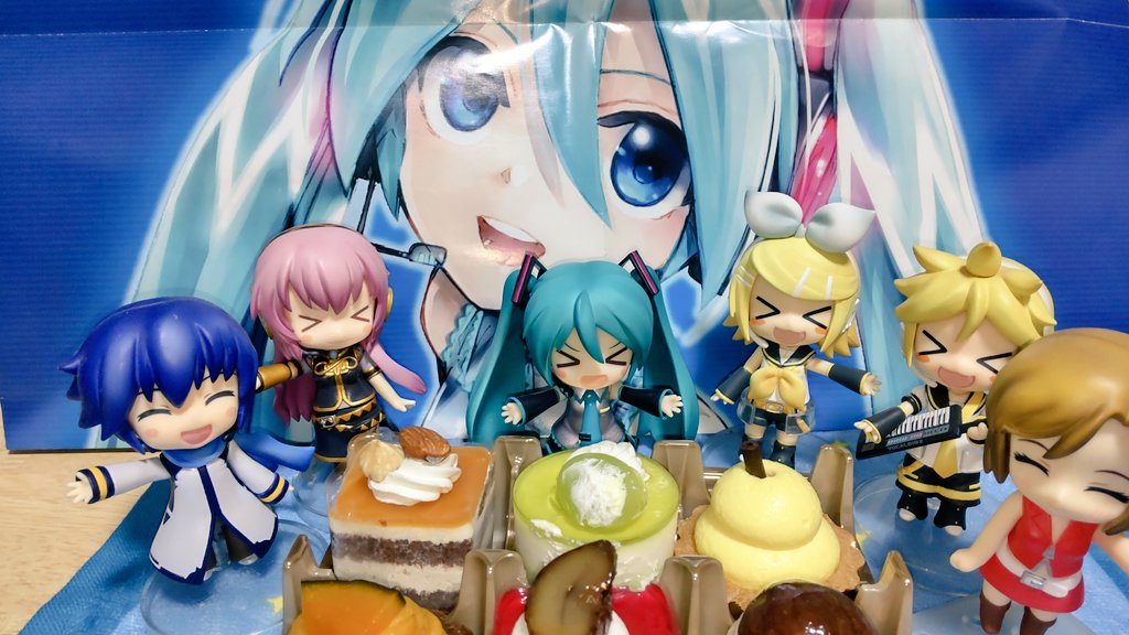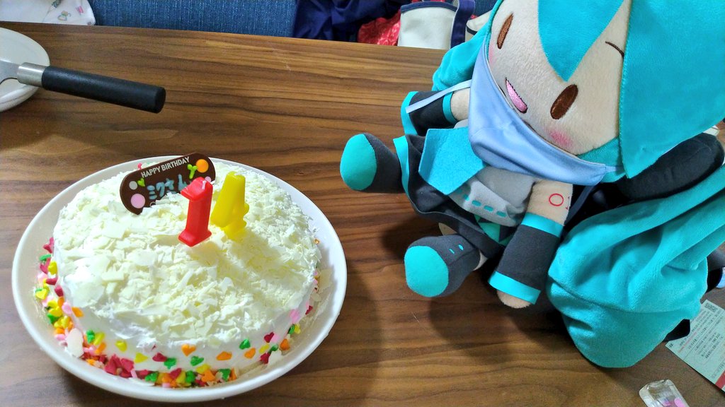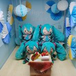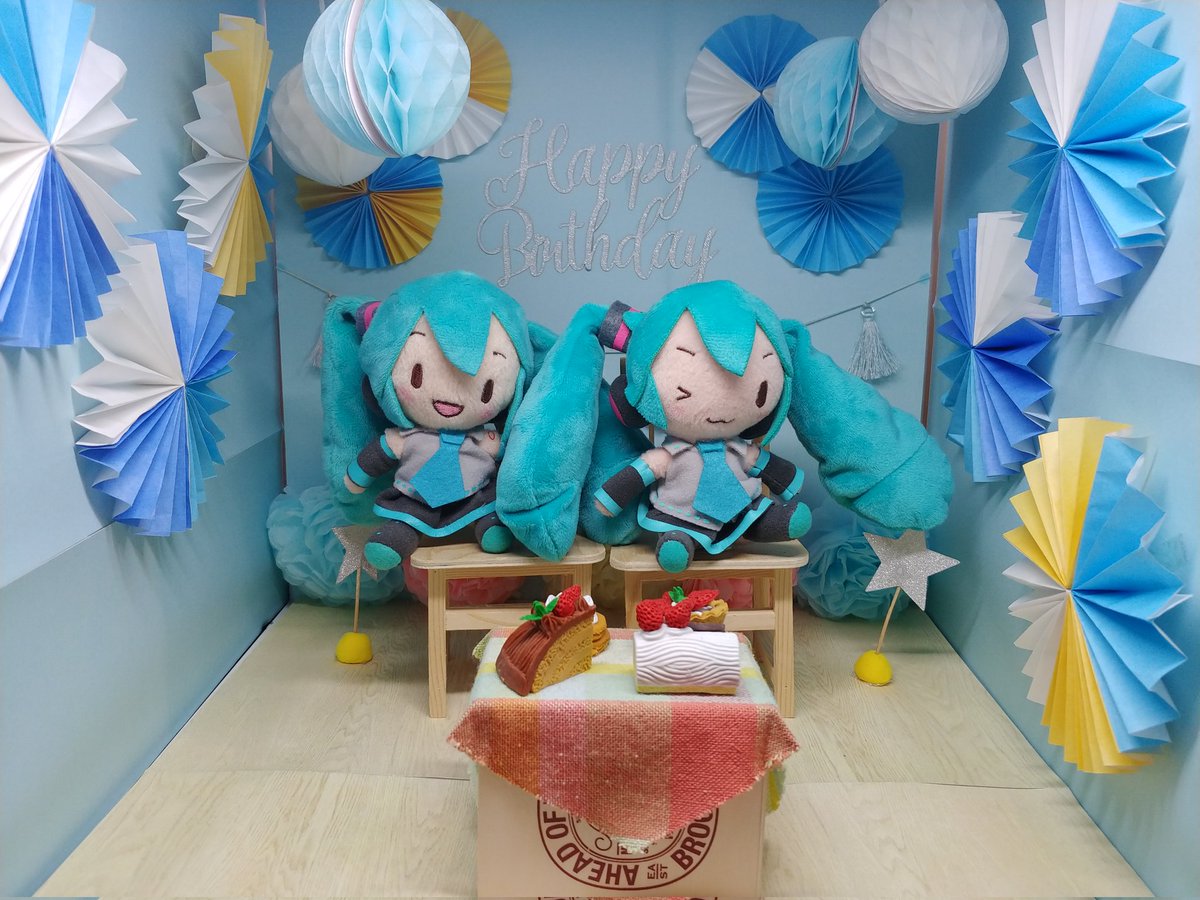Happy Birthday Miku-chan! I'm enjoying some cake with my fuwas 💙 #初音ミク #初音ミク生誕祭2021 #初音ミク誕生祭2021 I took inspiration from @pretz179 's tweet.