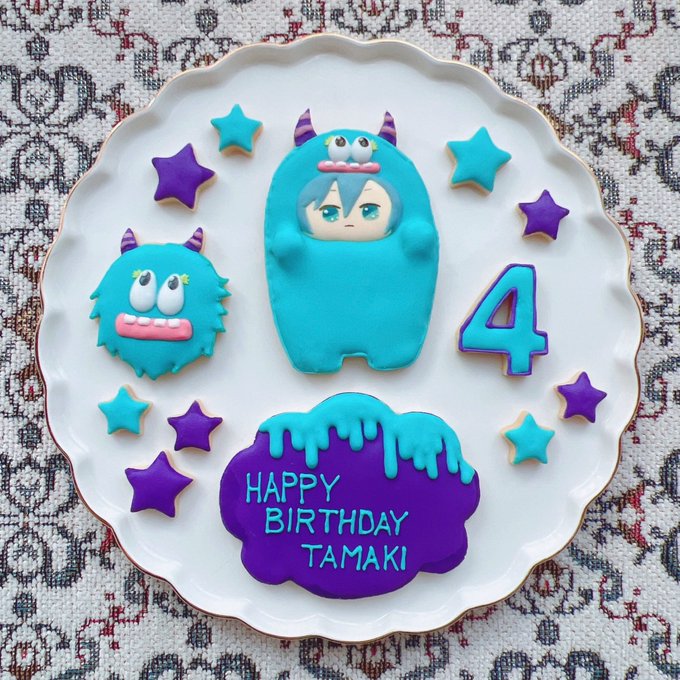 環君お誕生日おめでとう🎉✨ 環君の素直なとこも 優しさも 切なさも 垣間見せるセクシーさも 17歳183cmの無邪気な赤ちゃんな所も大好きだよ…❗️ 環君イメージでクッキーとプリン作りました🍮 環くんの髪型、おろしてるのも結んでるのも好き過ぎて両方作った😂 #四葉環生誕祭2022 #アイナナスイーツ部