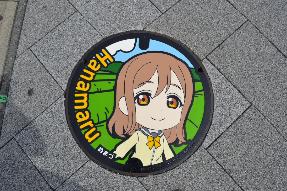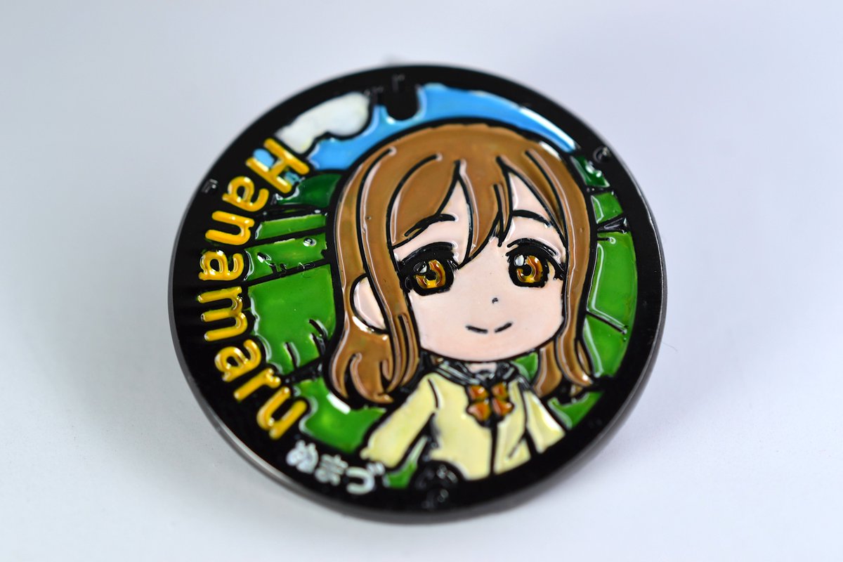 NEOPASA駿河湾沼津のガチャで当たったマンホールの記念コインに色を付けてみました😊 大きさ比較の1円玉と塗っていないものと並べてみました!! 最後の画像は本物です。 #国木田花丸誕生祭2022 #国木田花丸 #マンホール