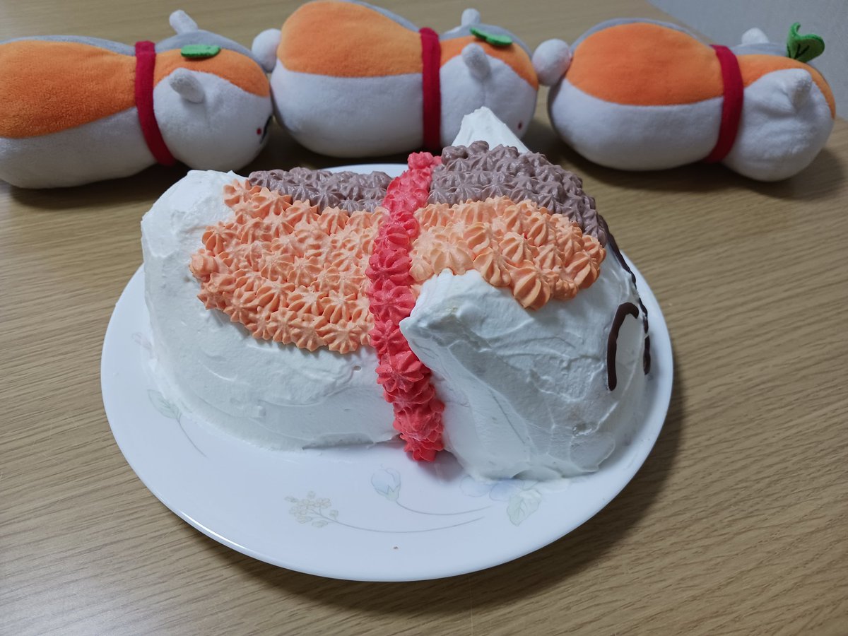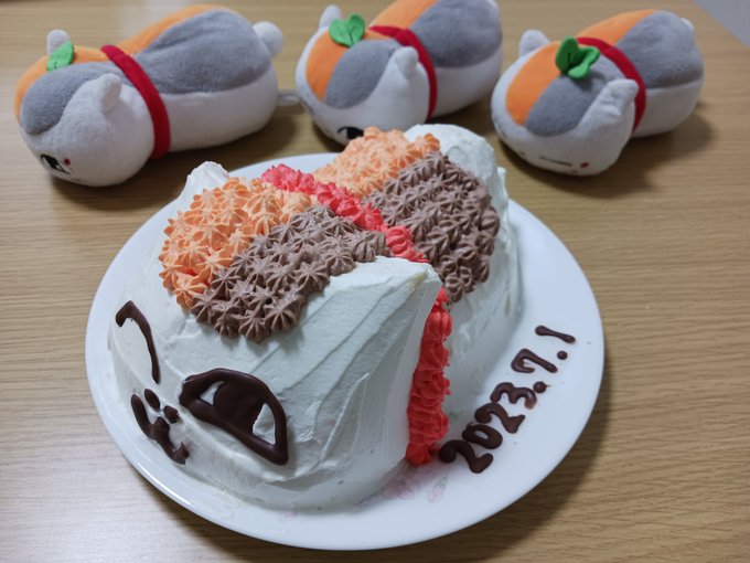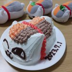 なつめくん、誕生日おめでとう♥️頑張ったけど、正面からみると全然かわいくないケーキになっちゃった…でも、立体頑張った…しかし、約2000kcal(笑) #夏目貴志誕生祭2023 #夏目貴志生誕祭2023