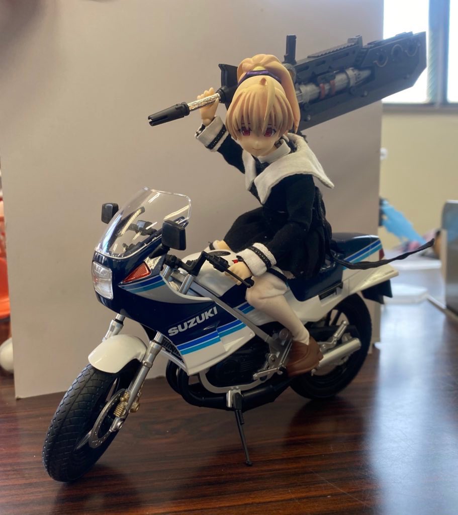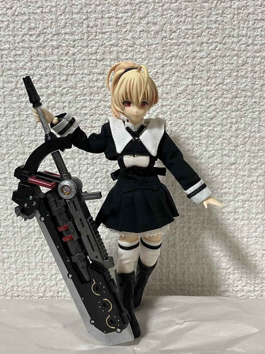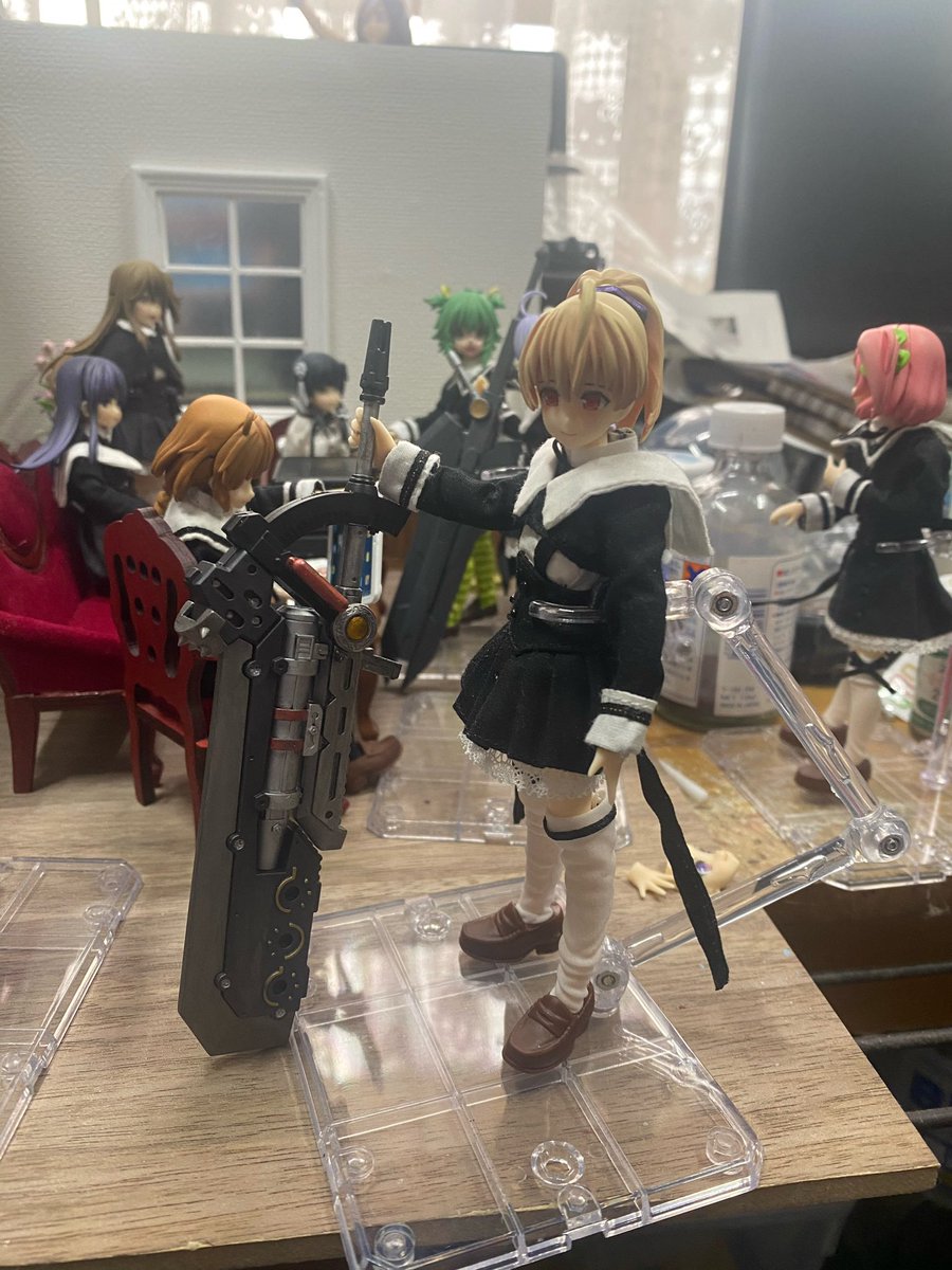 ちゃんとした鶴紗さんも置いときますねー。 ウチの1/12安藤鶴紗とブーケ放送の頃にガンマカで鶴紗モデルのカラーリングにリペイントしたティルフィングです。 砲口をピンバイスとダイヤモンドやすりで彫って穴開けたり微改造してます。 #安藤鶴紗生誕祭2023 #アサルトリリィドール部
