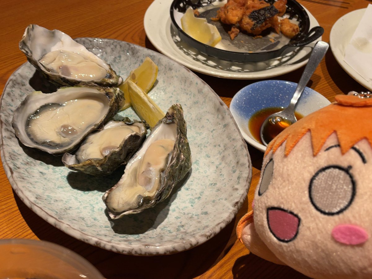 さかなや道場さんでの賑やかな小原鞠莉嬢の生誕前々日祭☆ ✨「マリー特製のマリゲリータピザデース!」 🍊「生牡蠣なのだー!」 ✨「マリーの美声に酔いしれるのデース!」 #lovelive #Aqours #小原鞠莉生誕祭2022
