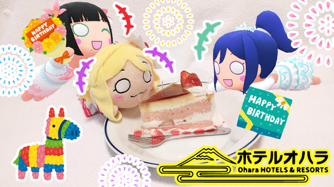 改めて、鞠莉ちゃんお誕生日おめでとう🎉 淡島の後はグランマシーサイド店さんのバースデーケーキで皆でお祝い🍰✨✨ ルビィちゃんと流れ星を飛ばしあったりしてました😆 #小原鞠莉生誕祭2022 #グランマシーサイド