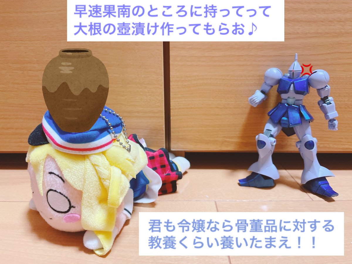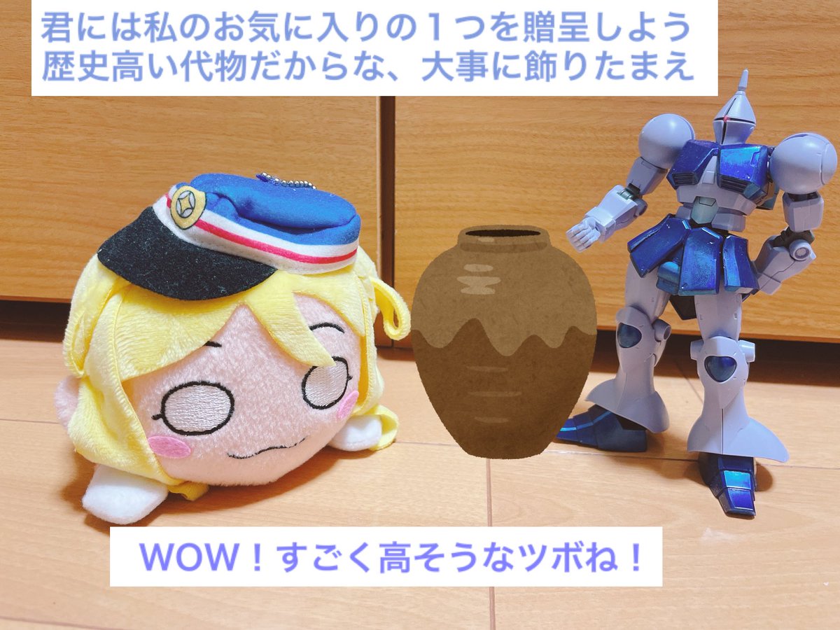 今日はAqoursのご令嬢、小原鞠莉ちゃんの誕生日ですね。今後スクスタで鞠莉ママやら小原グループが絡むストーリーとか出るんでしょうか🤔それはそれで面白そうです。 「骨董品をもらう」 #寝そべりとジオン兵の日常 #小原鞠莉生誕祭2022