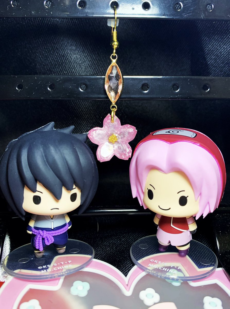 先日浅葱お姉様に頂いた🌸のストラップがとっても可愛かったのでピアスにしちゃいました😍 サクラちゃん誕生日に折角なので上げさせて頂きます😊 サクラちゃん誕生日おめでとう🎉🎊🎉 #春野サクラ誕生祭2022