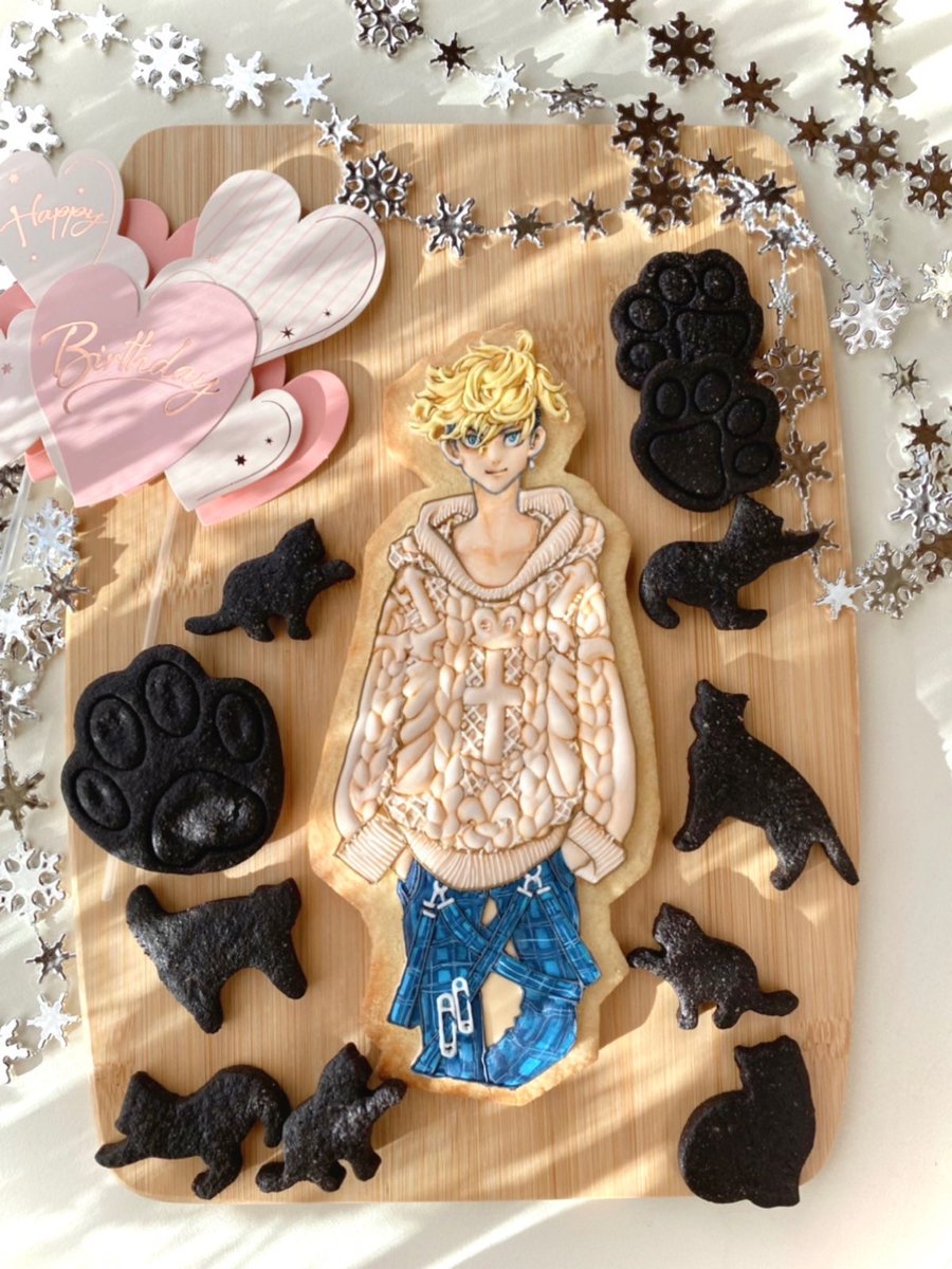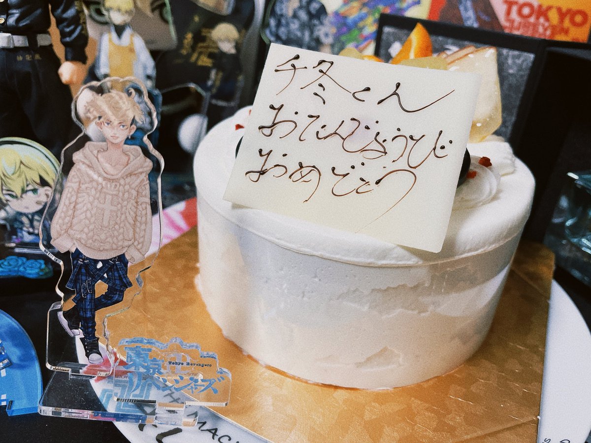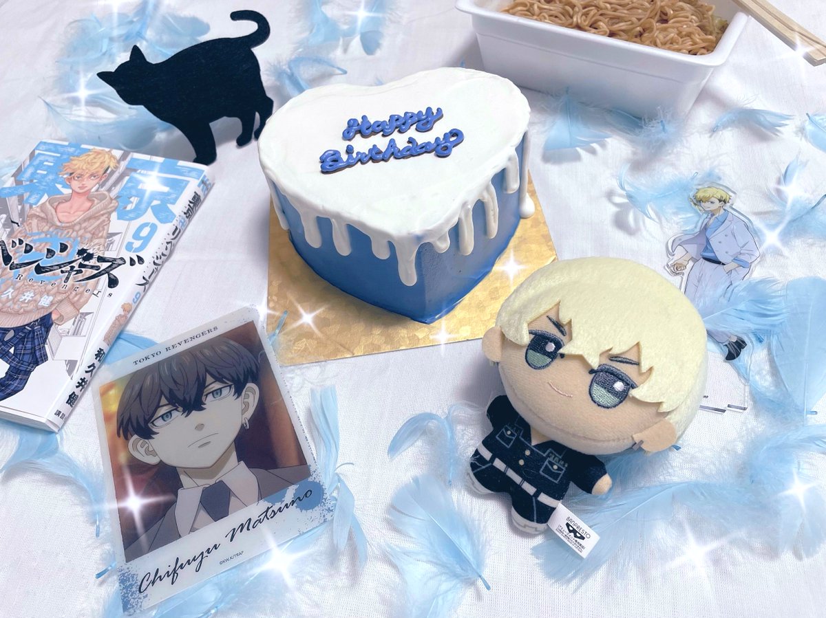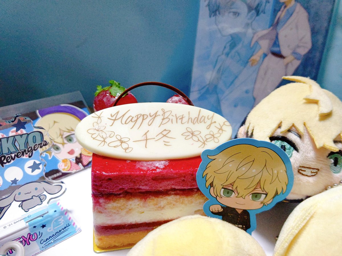 松野千冬さん、お誕生日おめでとうございます。 初めて(?)推しケーキなるものを作ったよ〜!千冬さんの私服をイメージしました! 千冬さんの笑顔が大好きお前が1番お前が優勝アニメ2期も楽しみにしてます。 #松野千冬誕生祭2021 #ありんこパティシエール