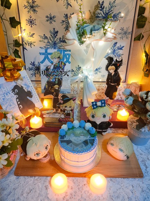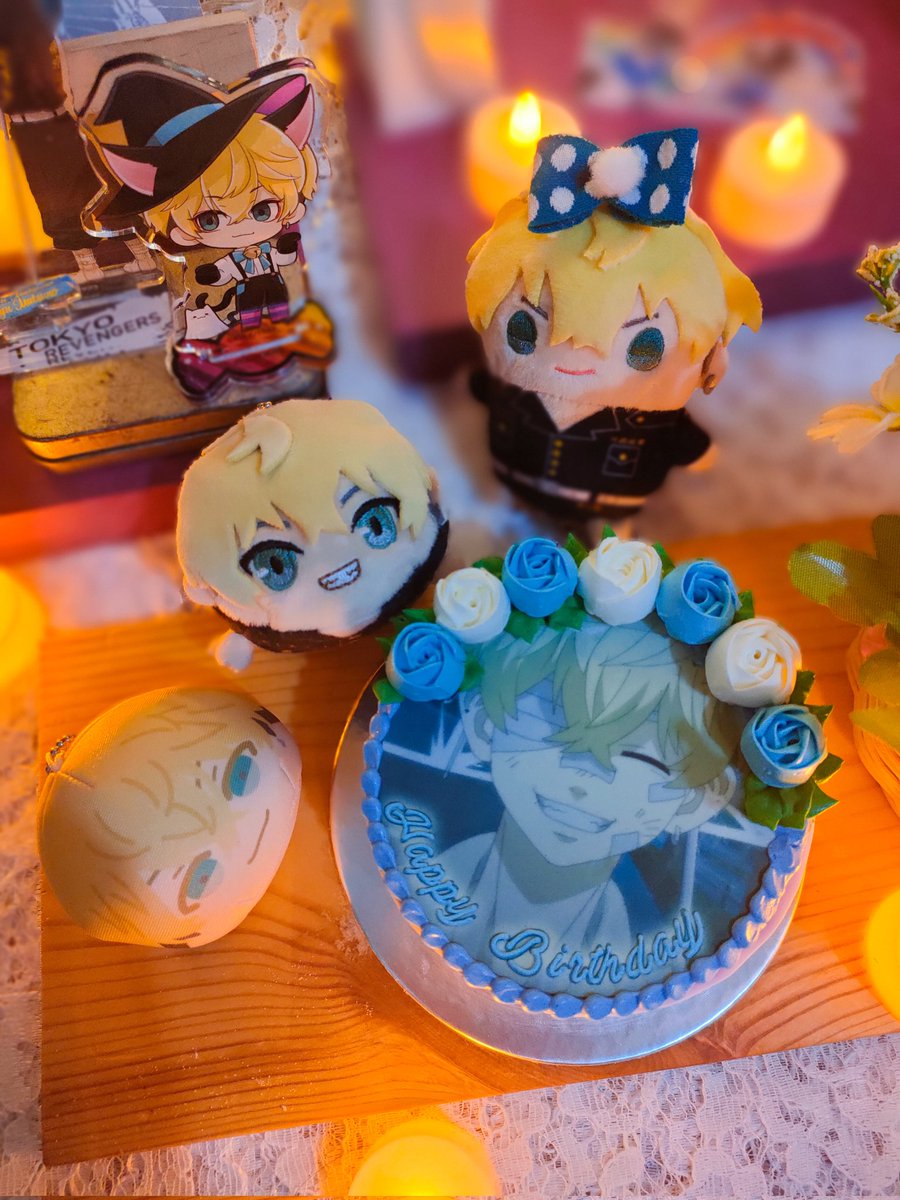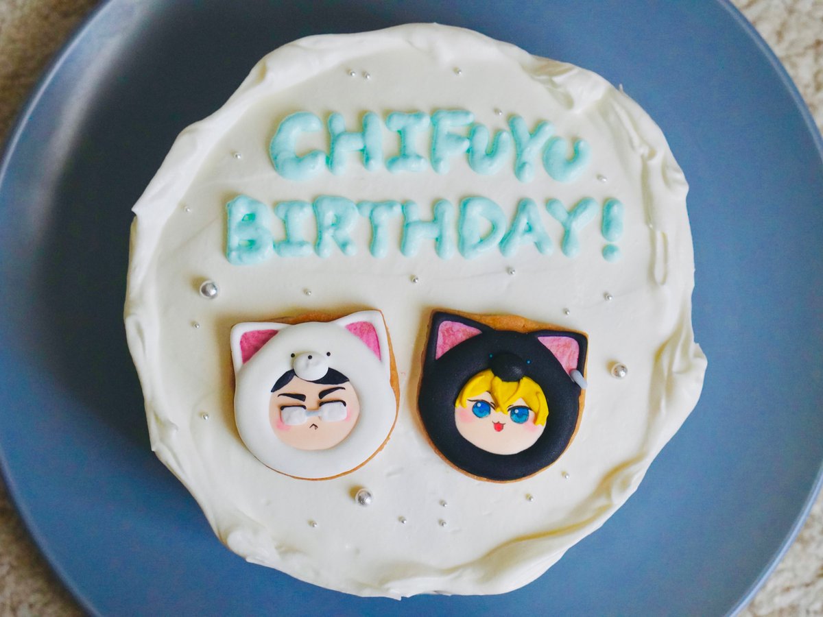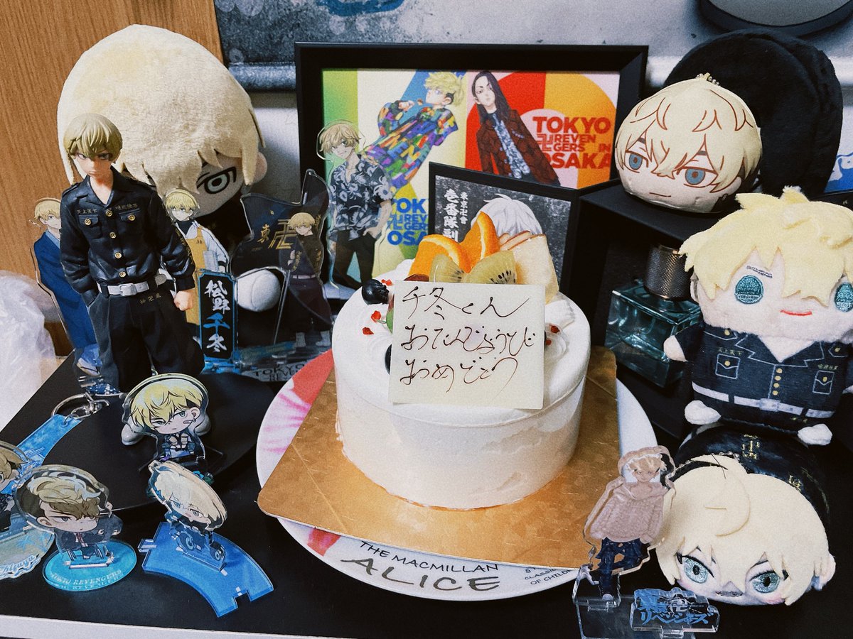 松野千冬さん、お誕生日おめでとうございます。 初めて(?)推しケーキなるものを作ったよ〜!千冬さんの私服をイメージしました! 千冬さんの笑顔が大好きお前が1番お前が優勝アニメ2期も楽しみにしてます。 #松野千冬誕生祭2021 #ありんこパティシエール