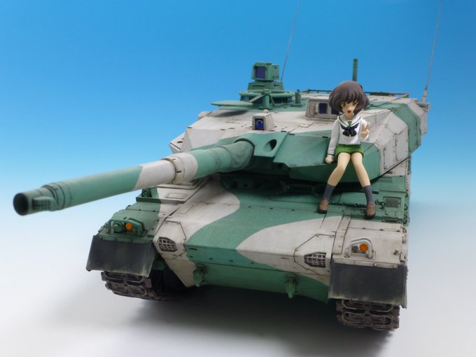 #秋山優花里生誕祭2022 秋山殿おめでとうございます。 ここまで戦車に嵌ったは秋山殿のおかげ。 1/35の10式戦車ガルパン仕様の10式試作1号車(半スクラッチ)と1/35秋山殿(半スクラッチ)です。