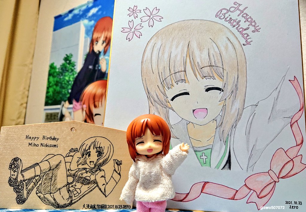#西住みほ生誕祭2021 #西住みほ誕生祭2021 みぽりん🎵 お誕生日おめでとうございま~す🎉🎊🎂 『あんこう踊りでお祝いだよ~😆💕』 ・・・ まほ 『なんで私まで...(´-ω-`)』 #ガルパン #キューポッシュ #ねんどろいどどーる #ピコP