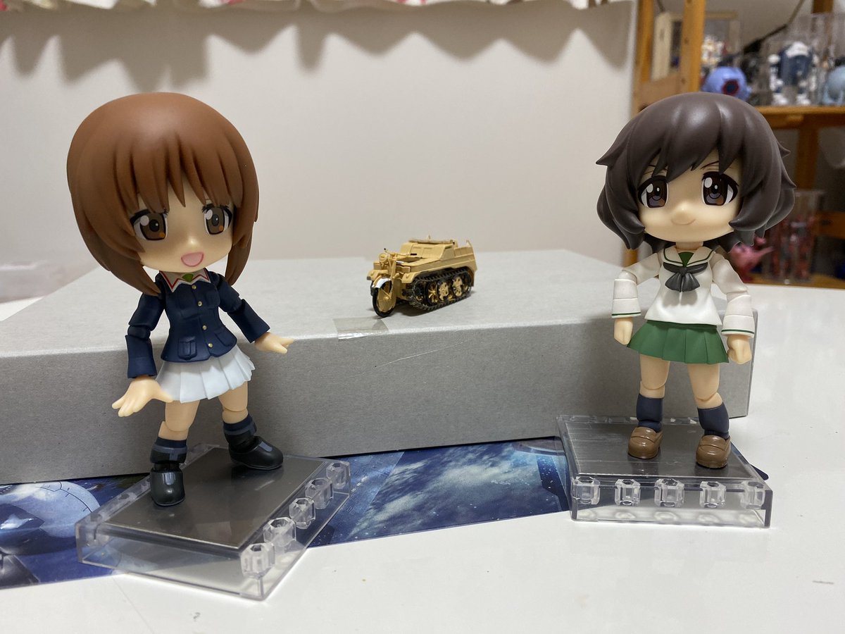 #西住みほ生誕祭2021 と言うことで、秋山殿と今日完成したケッテンクラート(タミヤ製)と共に。 そう言えば、プラッツ(だったかな?)から 「みほと優花里のケッテンクラート」なるプラモが出ていましたね。 #garupan #キューポッシュ