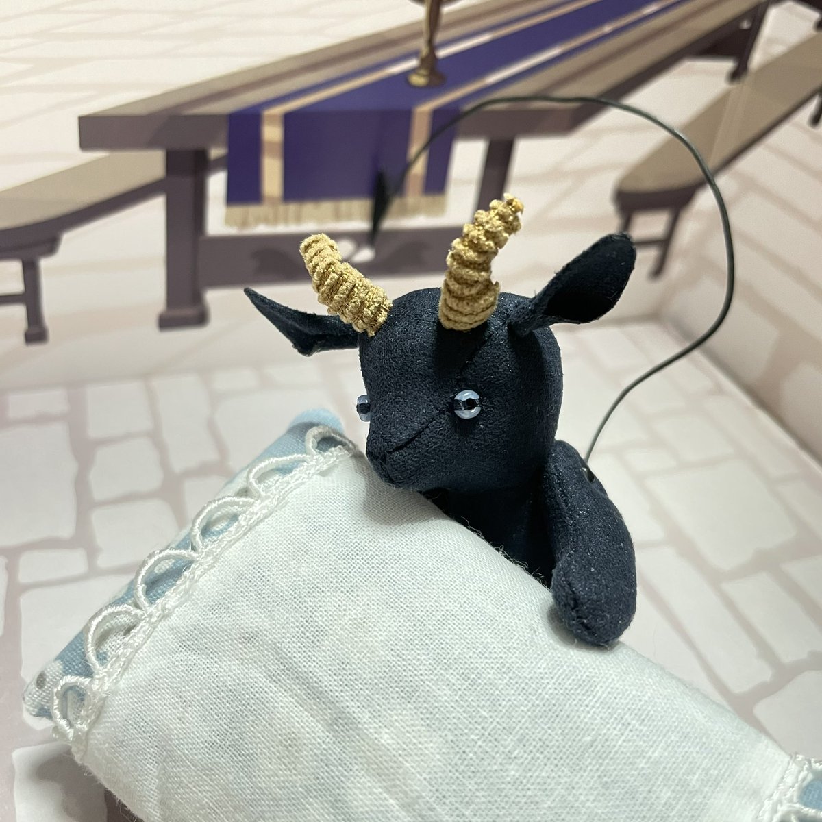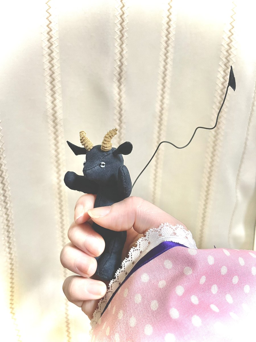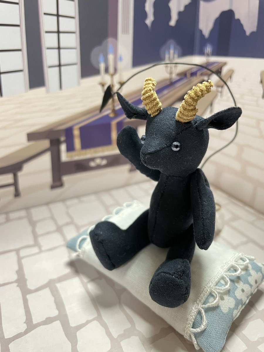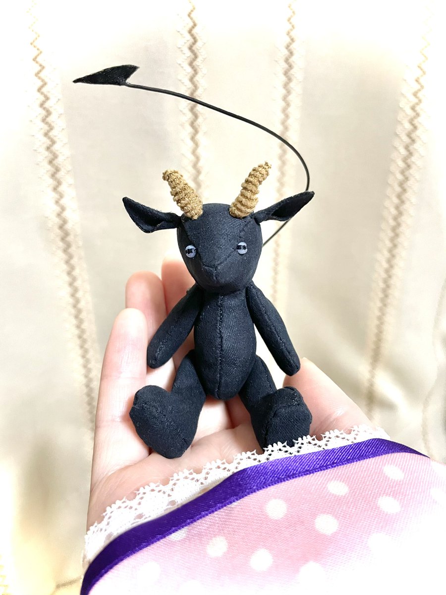 久方ぶり過ぎる二次元の推し! 何かしたくて、百均の布で急いでヤギのぬいぐるみ作りました。 有り合わせで ごめんよ、おめでとう!🥳 幸せになってくれ〜幸せになってくれ〜🐐🌟 #あくましゅうどうし誕生祭2021 #黒山羊おじいちゃん誕生祭