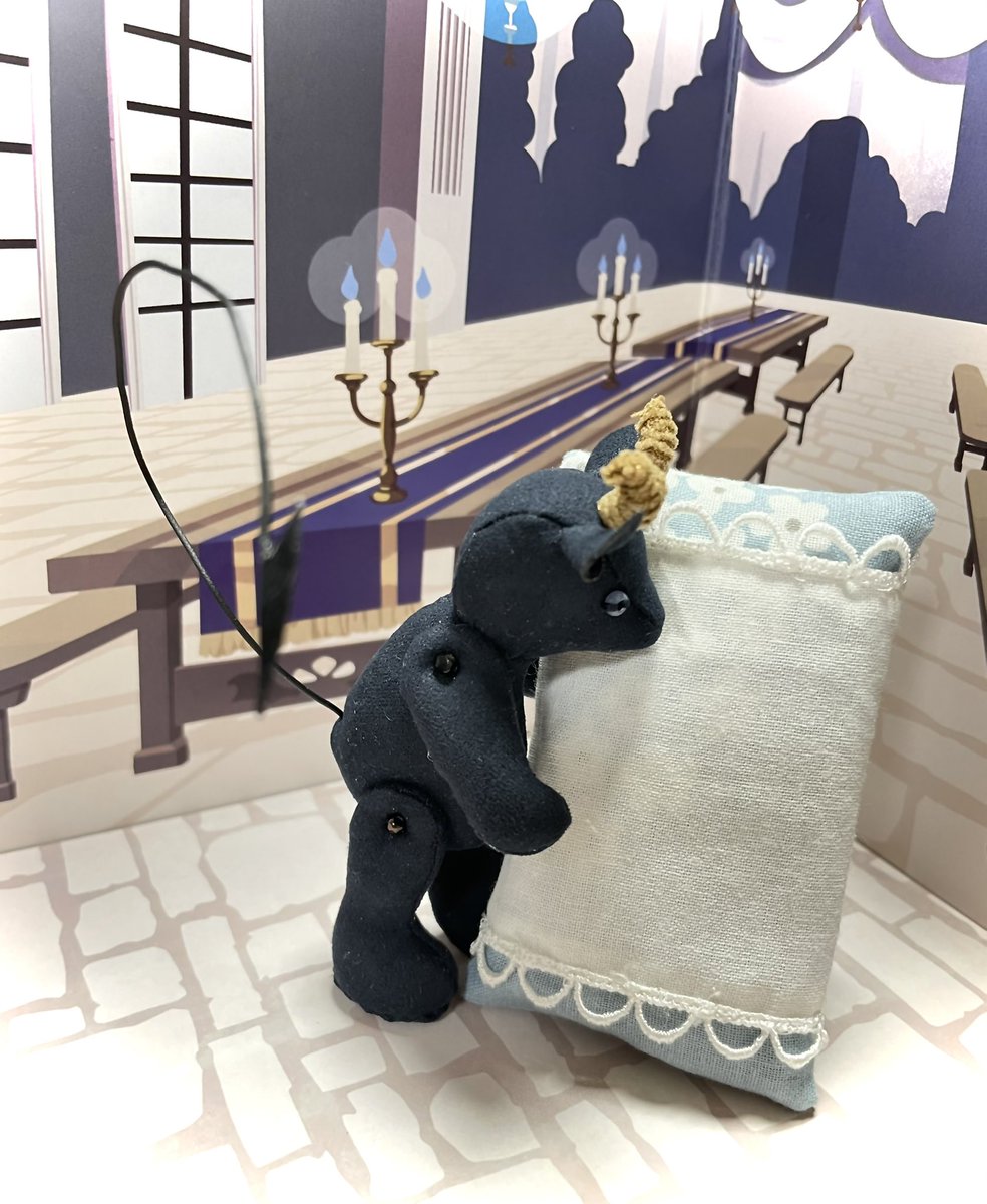 己の手ですみませんですが、追加画像。 ピコDちゃんに姫寝巻き作る予定の布なので縮尺がアレだけど、こうじゃ! このあと 袖 の 中 に 落 ち ま す よ う に…( ◠‿◠ )ニコ #あくましゅうどうし誕生祭2021 #黒山羊おじいちゃん誕生祭 魔王城手芸部 その5