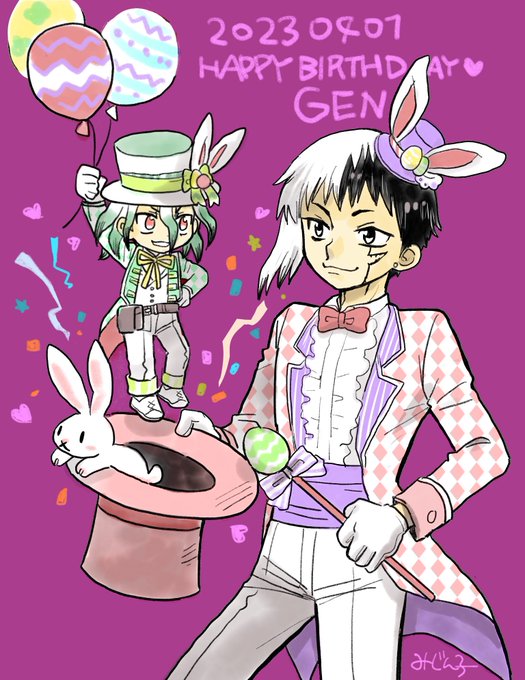 🎊🎂❤︎︎ 𝐇𝐚𝐩𝐩𝐲 𝐁𝐢𝐫𝐭𝐡𝐝𝐚𝐲︎︎ ❤︎︎ 🎉💝 呼ばれて飛び出てじゃジャジャジャーン❣️お誕生日おめでとう、だな‼️ #DrSTONEゲン誕生祭 #あさぎりゲン誕生祭2023