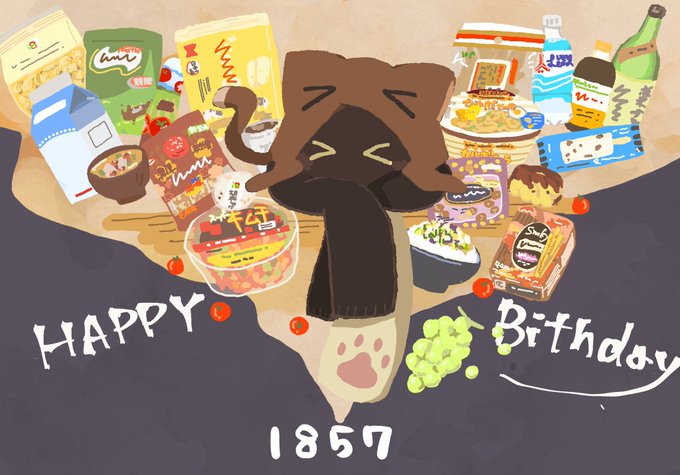 いちはちさんお誕生日おめでとうございます🐱🎉🎉✨いちはちさんにとって幸せ溢れる素敵な1年になりますように🐱🤎🤎 #bintrollFA #絵1857 #1857誕生祭2021 #いちはちさん誕生祭2021