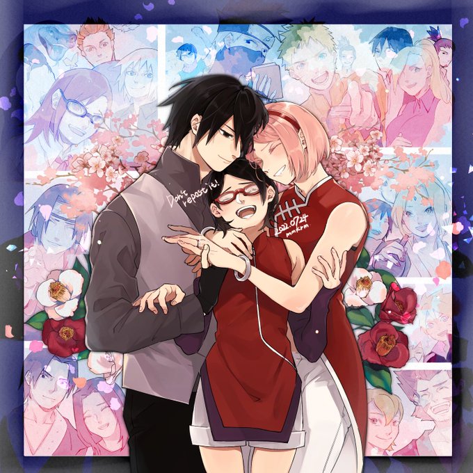 サスケくんお誕生日おめでとう! 昨年発行の桃胡桃主催のサスサクイラストアンソロジー「For you!」に掲載したイラストです🙌サスケから、サクラ、そして二人の子供であるサラダから枝分かれしていく、たくさんの愛や繋がり、そして幸せを感じていただければ幸いです! #うちはサスケ生誕祭2023