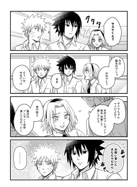 サスケ誕生日おめでとう!大切な人たちに祝われてくれ~! こちらはサスサクイラストアンソロジー「For you!」に寄稿させて頂いたイラストです #うちはサスケ生誕祭2023 #うちはサスケ誕生祭2023