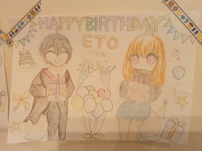 @eto_cpメンション失礼します🙇♀️ 手紙も厚塗りも初めて書いて見ました!! お誕生日おめでとうございます🎉 ⚠️イラストはフリー素材も使ってます。#えとさん誕生祭2022 #からぴち #カラフルピーチ素材 #えとさん生誕祭2022 #えとさん