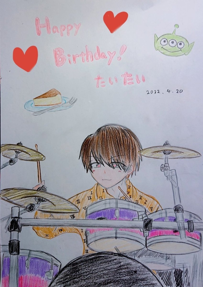 お誕生日おめでとうございます! いつもみんなを笑わせてくれるけど、真面目で優しくてかっこよくドラムを叩くたいたいが大好きです! これからも応援し続けます、身体に気をつけて、無理なく頑張ってください! #たいたい爆誕祭2022 #たいたい誕生祭2022 #松村太我爆誕祭2022 #ノンラビ描いてみた