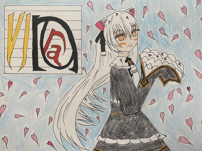 #のらきゃっと6歳誕生日 #のらきゃっと生誕祭2023 #Nora_Cat こちらはあーるまーるさんのワールドに寄贈させていただいたお誕生日イラストです! のらちゃんの部分はプロフ絵の模写で、写ってない部分はVRoid Hubをみて補完しました! phiRoさんのイラストも参考にさせていただきました!
