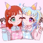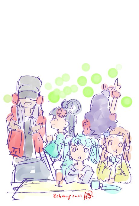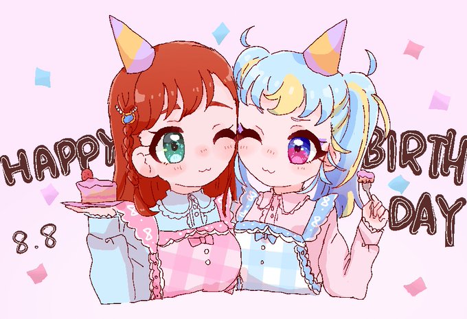 #ゆうのさん推しアート #まつりみゃむ生誕祭2022 ワチャワチャ〜!!またもサクマコーデ第3弾でまつみゃ!! みゃむはまともに描くのは初めてだったけど、らしくなってればいいな... ついでにさっきのあうるも修正、寝そべってる感を強調