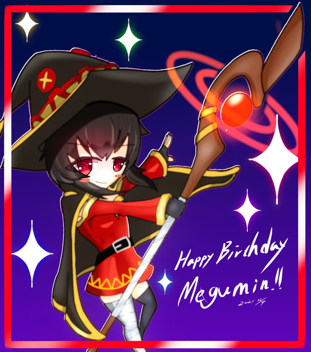 今日はめぐみんの誕生日!最近になって見始めたら面白くて一気に2期までみてしまいました、ちょむすけの正体はわからぬままでした、絶対ただの猫じゃないでしょ…。 #めぐみん生誕祭2021 #めぐみん #このすば