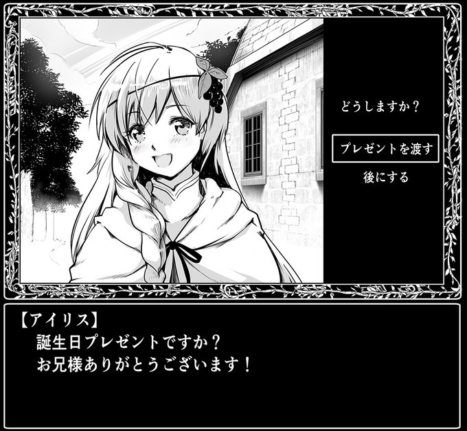 アイリス誕生日おめでとうございます。 今年は、 この仮面の悪魔に相談を!の 庶民服バージョンにしたけど (なので背景もアクセルの街イメージ) あまり特徴付けられなくて申し訳ない… あと画面は 古のファンタジーゲーム風 にしてみました。 #このすば #アイリス誕生祭2022 #アイリス生誕祭2022