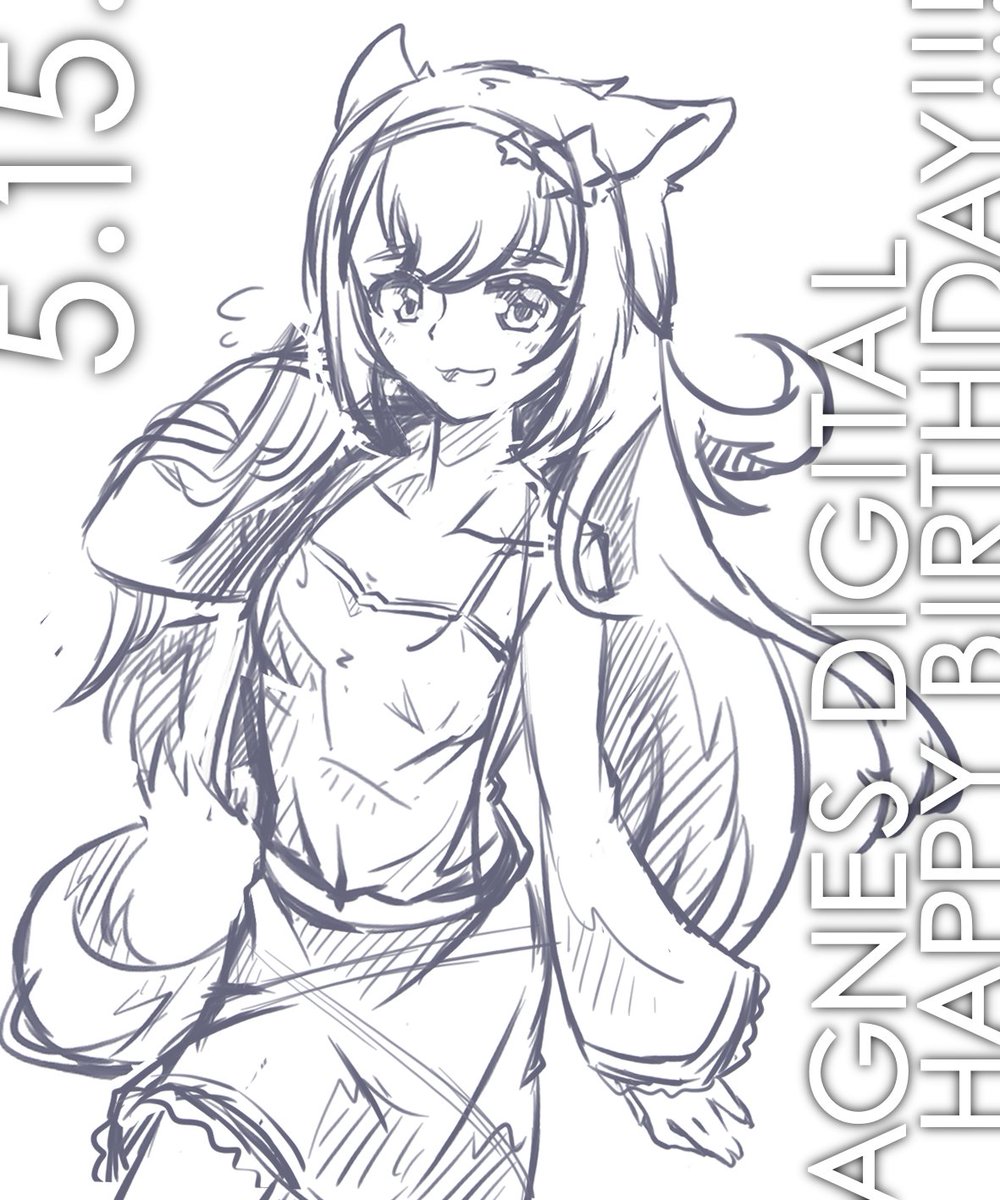 いろいろあって推しの誕生日だということを完全に失念していたので急遽描こうとしたけどしたがきの時点で爆裂に力尽きたのでいつかちゃんと描くかもしれないし描かないかもしれないアグネスデジタル誕生日おめでとうすぎイラスト🖋️⭐️ #ウマ娘 #ウマ娘プリティーダービー #アグネスデジタル生誕祭2022