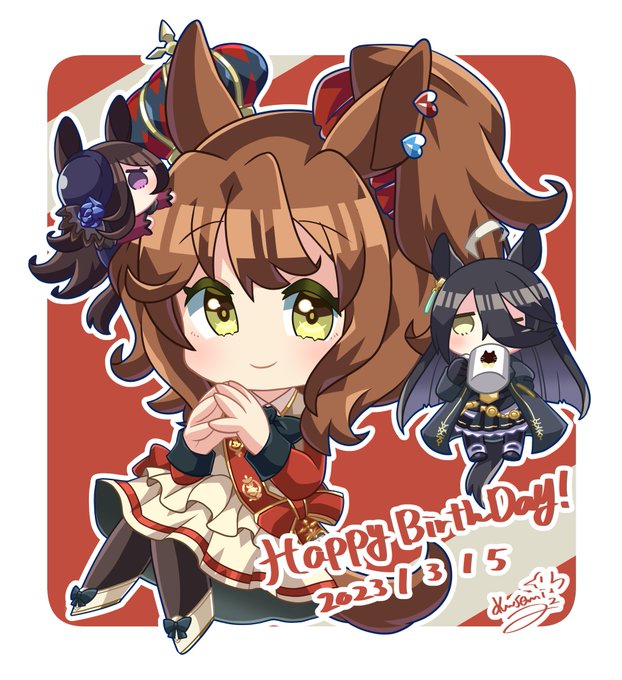 #ウマ娘 #アストンマーチャン生誕祭2023 #マンハッタンカフェ生誕祭2023 #ライスシャワー生誕祭2023 アストンマーチャン、マンハッタンカフェ、ライスシャワー誕生日おめでとう!!(データが途中で吹っ飛んで下書きからやり直したため一週間遅れた(怒))