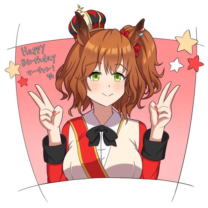 遅刻していますがアストンマーチャンさんお誕生日おめでとうございます 「Vサイン」と「忘れるな」だけで連想した某映画オマージュのお祝いイラストです #ウマ娘 #アストンマーチャン生誕祭2023