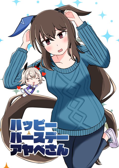 12日目!アヤベさんおめでとう!! 色んな人に祝われてたくさん喜んで欲しい…それで帰ってきてうとうとしちゃって欲しい 「アヤベさん、それカレンのしっぽですよ〜…?…あれ、寝ちゃってる…かわいい…」ってなってほしい #ウマ娘 #ウマ娘プリティーダービー #アドマイヤベガ誕生祭2022
