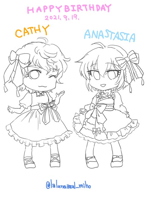 キャシーちゃん、アーニャちゃんお誕生日おめでとう。 お洋服はメタモルフォーゼさんの椿爛漫~ねこのかくれんぼ~シリーズです。 #モバマス版深夜の真剣お絵かき60分1本勝負 #キャシー・グラハム生誕祭2021 #キャシー・グラハム誕生祭2021 #アナスタシア生誕祭2021 #アナスタシア誕生祭2021