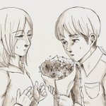 「ええと…あれだ 近所のばあさんのお裾分けだ 俺はこういうのは食わないからお前が食え 食ってもっと強くなれ」 「ハァ?💢」 という誕生日もあったかもしれない happy birthday アニ🥧 #アニ・レオンハート生誕祭2022 #アニ生誕祭2022 #shingeki #aot ↓ English translation is below.