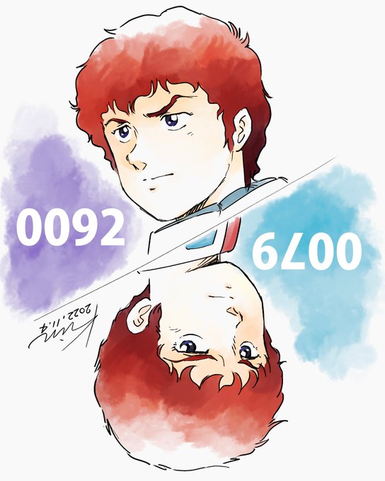 前回投稿した「アムロ生誕祭」のイラストに沢山の「いいね」をもらったので、感謝を気持ちを込めて上下反転版です♪(ああ、0092年のアムロ、似てないのがバレる~💦) ちなみに0093年の3月に行方不明になるので、0092年のアムロさんにしました。 #アムロ・レイ生誕祭2022 #アムロ・レイ誕生祭2022