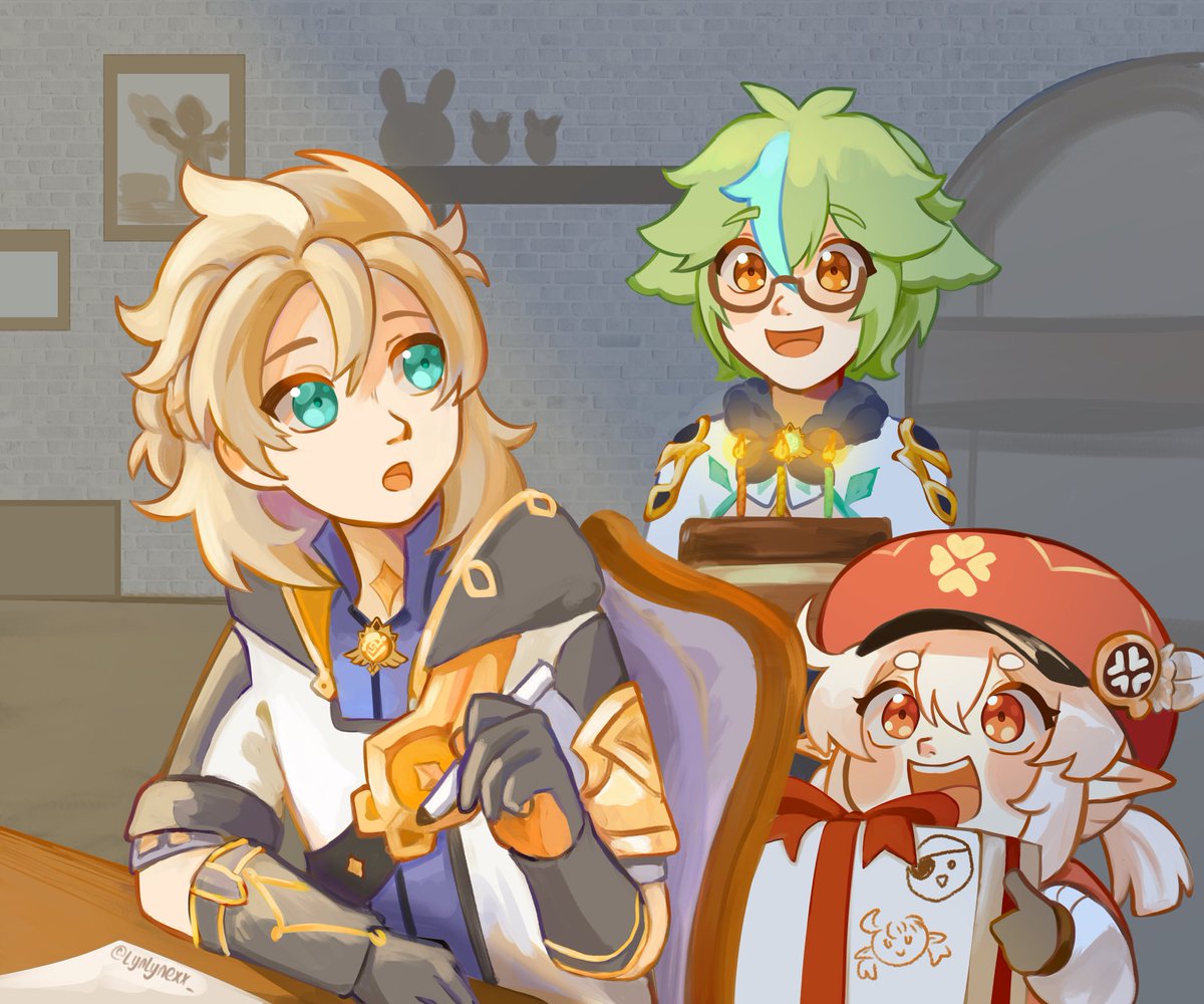 happy birthday big brother albedo! he got a cecilia flower crown from klee 🥰 🌼🌼🌼 #Genshinlmpact #原神 #Albedo #Klee #アルベド生誕祭2022