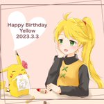 そう言えばイエローの誕生日だ! …と忘れていたフリをして用意してた絵を貼ります。 指で描いたから線ブレブレなので拡大しないでください。 (スマホお絵描きアプリ使用) #ポケスペ #イエロー生誕祭2023