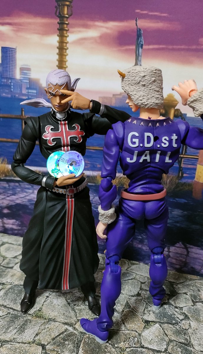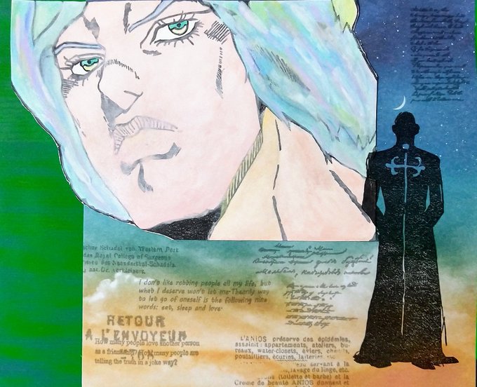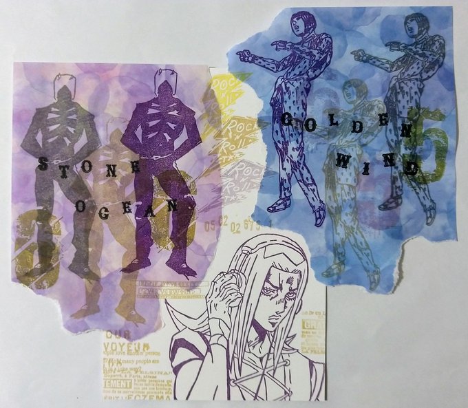 【ウェザ誕生祭③】 ペルラ、ウェザ、プッチ 3人の数奇な運命 誰かを 深く愛する気持ちから生じた 悲しい結末 殺人鬼と呼ばれた彼が 徐倫と出逢い、 愛を知ったことから この2人のもとに 導かれたように思えて、 感慨深い #ウェザー・リポート生誕祭2022 #jjba #消しゴムはんこ