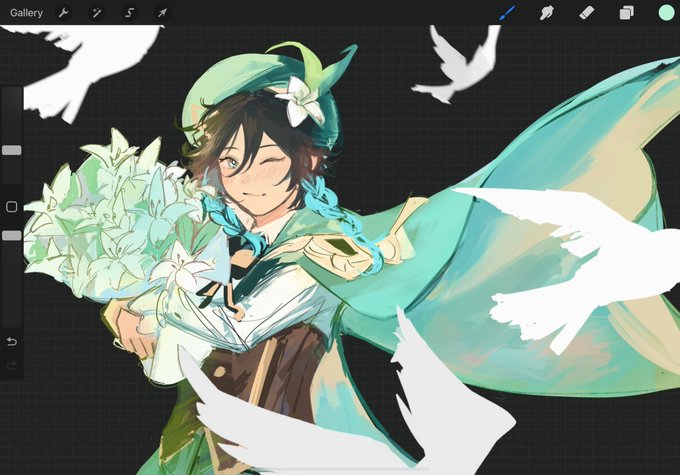 "Heh, we both smell like flowers now." . . HAPPY BIRTHDAY VENTI I LOVE YOUUU🥺💚 #ウェンティ生誕祭2022 #GenshinImpact