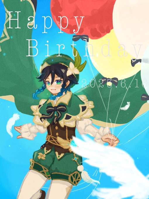 Happy birthday venti!!🎉🎂💚 #GenshinImpact #原神 #venti #venlumi #ウェン蛍 #เวนลูมิ #ウェンティ #ウェンティ誕生祭2023