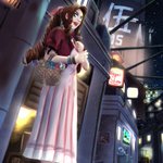 エアリス、誕生日おめでとう! やっつけ背景だけど、定規を使わず全部フリーハンドで描いてみたよ。だけどミッドガルっぽく描くのはとても難しくて、あれこれ考えてるうちに時間切れ…💦 #エアリス生誕祭2023 #エアリス誕生祭2023