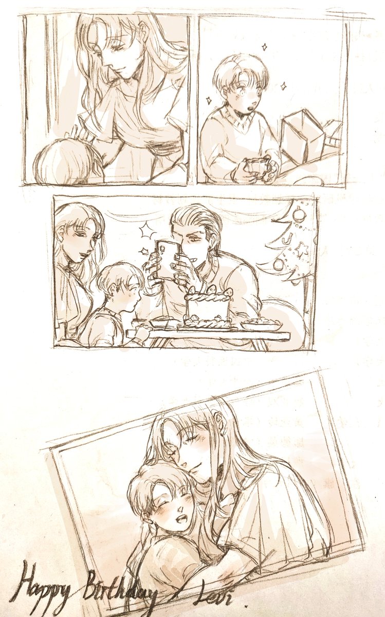 リヴァイ、お誕生日おめでとう✨🎂㊗️😭 現段階で下絵の下書きくらいしか終わってないので、まずは1コマだけ幸せそうなリヴァイを貼っておきます! #エルリのリヴァイ生誕祭2021 #エルリのリヴァイ生誕祭