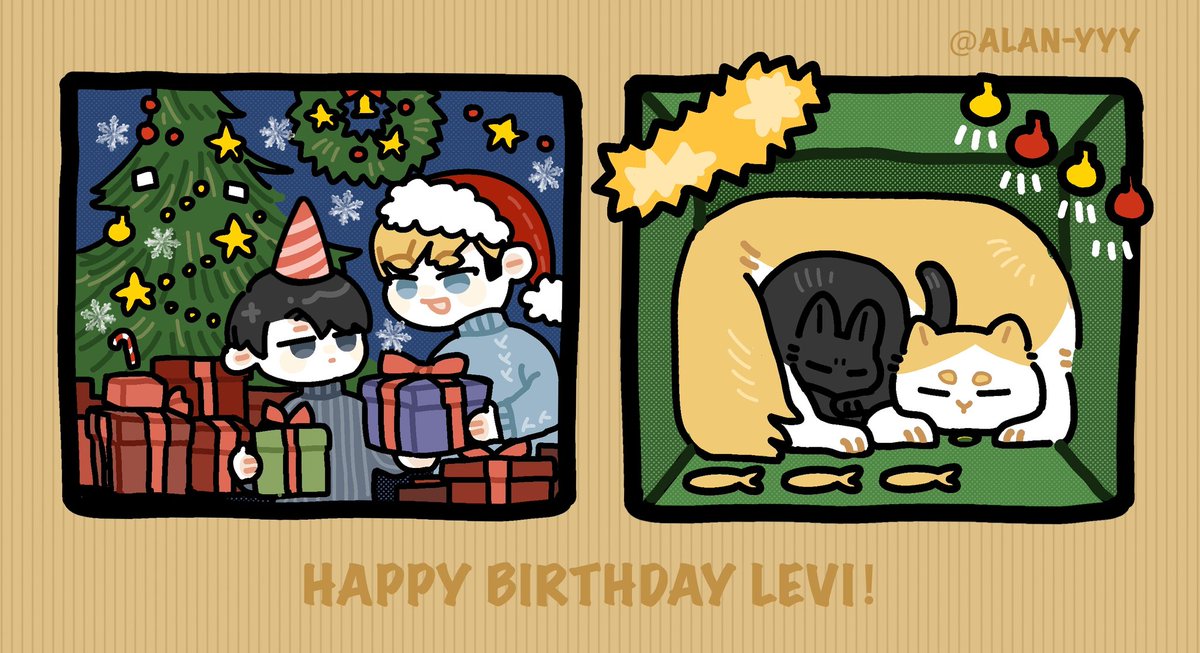 🍰子りばいちゃんゴロリちゃんりばいさんお誕生日おめでとう🎂🫖 えるびん'sとずっとしあわせに♡ 実はこの絵は本の表紙になります。使い回しですみません💦 #エルリのリヴァイ生誕祭 #エルリのリヴァイ生誕祭2022