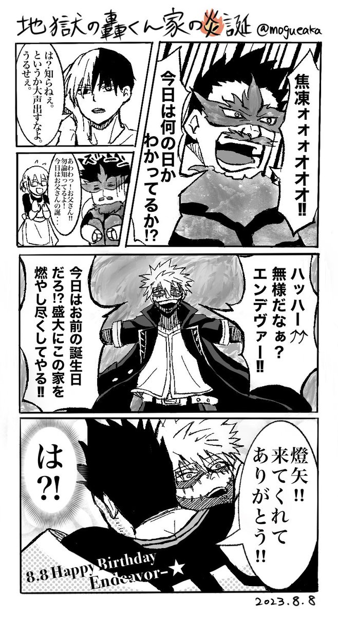 父の日に描いたエンデヴァー🔥漫画の誕生日ver.です😌✨ エンデヴァー、身も心も傷だらけでボロボロだけど最後まで応援してる💪✨ 一方では最高の親バカで居てくれ😁🎶 誕生日おめでとう🥳 #エンデヴァー生誕祭2023 #エンデヴァー誕生祭2023 #轟炎司生誕祭2023 #轟炎司誕生祭2023 #mha #endeavor twitter.com/mogueaka/statu…