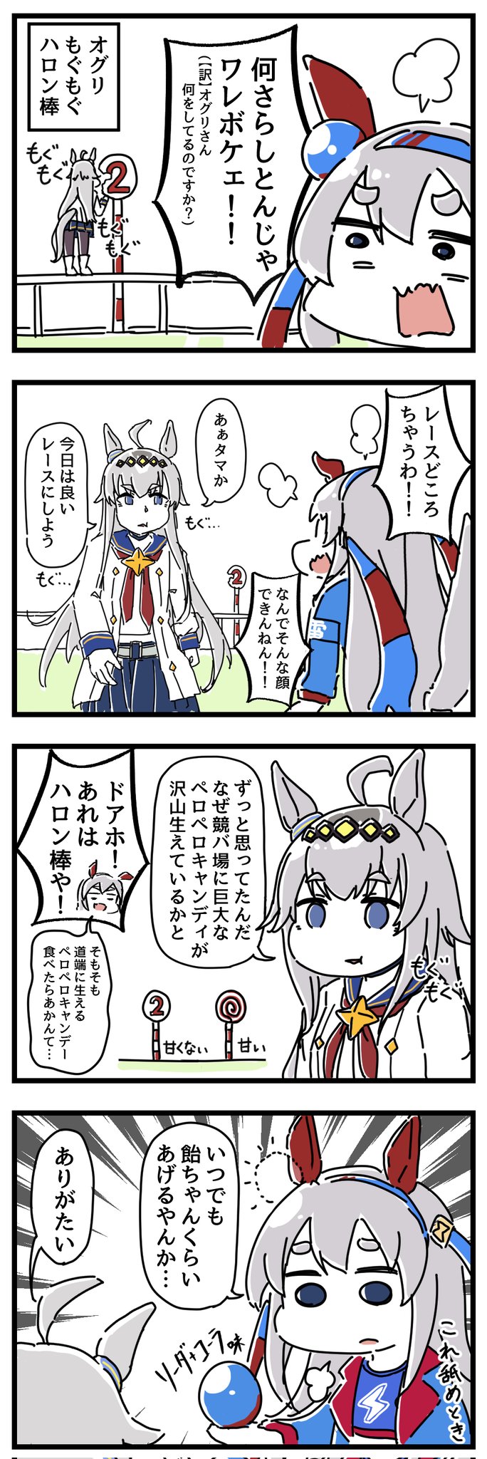 【ウマ娘】オグタマ大喧嘩 オグリの誕生日に喧嘩漫画とはこれいかに でもね、喧嘩するときもあるやろに(1コマ目)と思い描かずにはいられなかった。これを乗り越えての誕生日です← 続き?多分続かない #オグリキャップ生誕祭2022 #タマモクロス #オグリキャップ