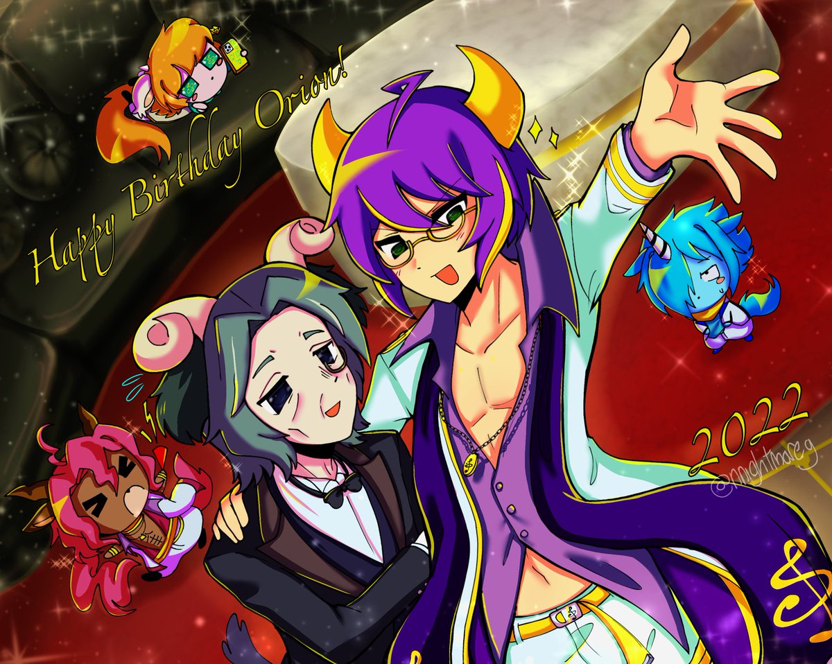 【⚠捏造衣装注意】 黄金爆誕!!ご生誕おめでとうございます!!✨🎂🎉🎊🎂✨ この男に狂ってから色んなものを狂わされています、今年もまた限定が来たら天井するのかな……くそう……今年も黄金に染まっていきたいです……好きだよ……🐂✨💸✨ #オリオン生誕祭2022