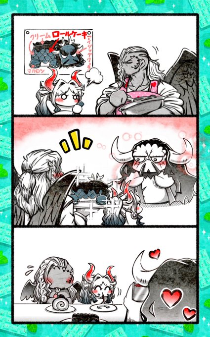 #カイドウ誕生祭2022 ヤマトとキングがケーキ作ってくれました。そのケーキを2人が食べるのを愛でるのが🐉パパにとってのプレゼント💖 実際にこんなケーキ作れる人いませんか〜? #絵描きさんと繋がりたい #イラスト #ワンピース #ONEPIECE
